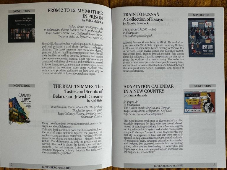 На стэндзе прэзентаваліся новыя выданні незалежных беларускіх выдавецтваў, у тым ліку — каталог выдавецкіх навінак з творамі вядучых беларускіх аўтараў. Непасрэдны ўдзел у кірмашы ўзялі прадстаўнікі беларускіх выдавецтваў у эміграцыі Gutenberg Publisher, «Мяне няма», Skaryna Press, Czabor.