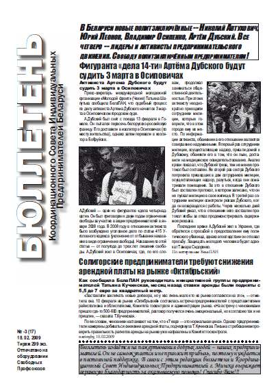 Бюллетень издаётся на пожертвования добрых людей -- наших предпринимателей. Он не самоокупается и не приносит прибыль, поэтому нуждается в постоянной поддержке. В связи с этим редакция бюллетеня и Координационный Совет Индивидуальных Предпринимателей г. Минска выражает огромную благодарность за оказываемую помощь! Спасибо Вам!!!