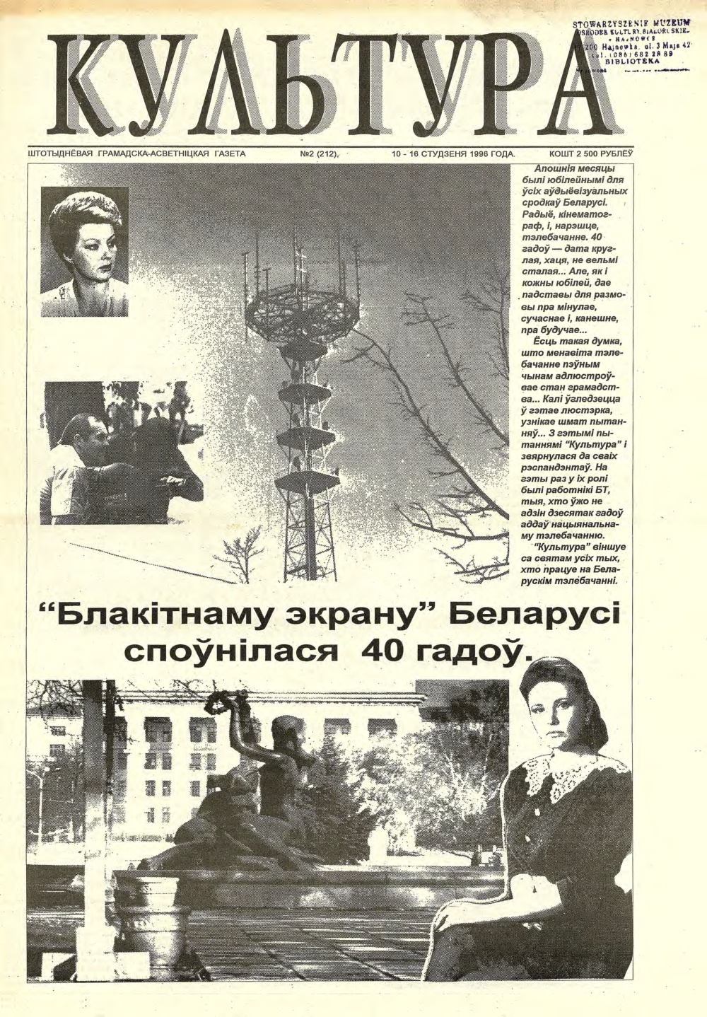 «Культура» — штотыднёвая грамадска-асветніцкая газета. Выдаецца з кастрычніка 1991 года ў Мінску на беларускай мове. Заснавальнік — Міністэрства культуры Рэспублікі Беларусь. З 2002 года з'яўляецца часткай рэдакцыйна-выдавецкай ўстановы «Культура і мастацтва», куды ўваходзіць разам з часопісам «Мастацтва». Галоўныя рэдактары: Вольга Іпатава (1991—1995), Людміла Крушынская (1995—2012), Сяргей Трафілаў (2012—2017), Ілья Сін (з 2017).be.wikipedia.org