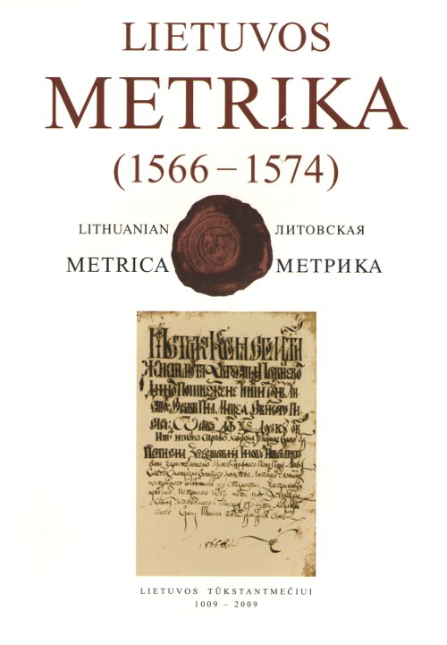 Литовская Метрика — книги документов (копий, оригиналов, реестров) канцелярии Великого Княжества Литовского XV—XVIII вв. История Литовской Метрики неоднократно излагалась в произведениях С. Пташицкого, Н. Бережкова, П. Кеннеди-Гримстед и И. Сулковской-Курасевы, Э. Баниониса и др. Деятельность канцелярии Великого Княжества Литовского во время правления великого князя Александра описал К. Петкевич. Напомним лишь, что фонд Литовской Метрики (Российский архив древних актов в Москве, фонд № 389) в настоящее время составляют 664 книги, из них: книги записей — 219, судных дел — 302, публичных дел - 36, переписей — 25, sigillata (регистры выданных документов, один из них вписан в отдел „Новые книги") — 3, посольской метрики -79. В 1835 г. книги Литовской Метрики были упорядочены по отделам, в 1952 г. проведена валовая нумерация книг. Между прочим, отдельные книги Литовской Метрики сохранились в Архиве Радзивиллов (AGAD) в Варшаве, в Библиотеке Чарторыских в Кракове, а одна небольшая книга 1793 г. — в Архиве истории Литовского государства. (Предисловие, фрагмент)