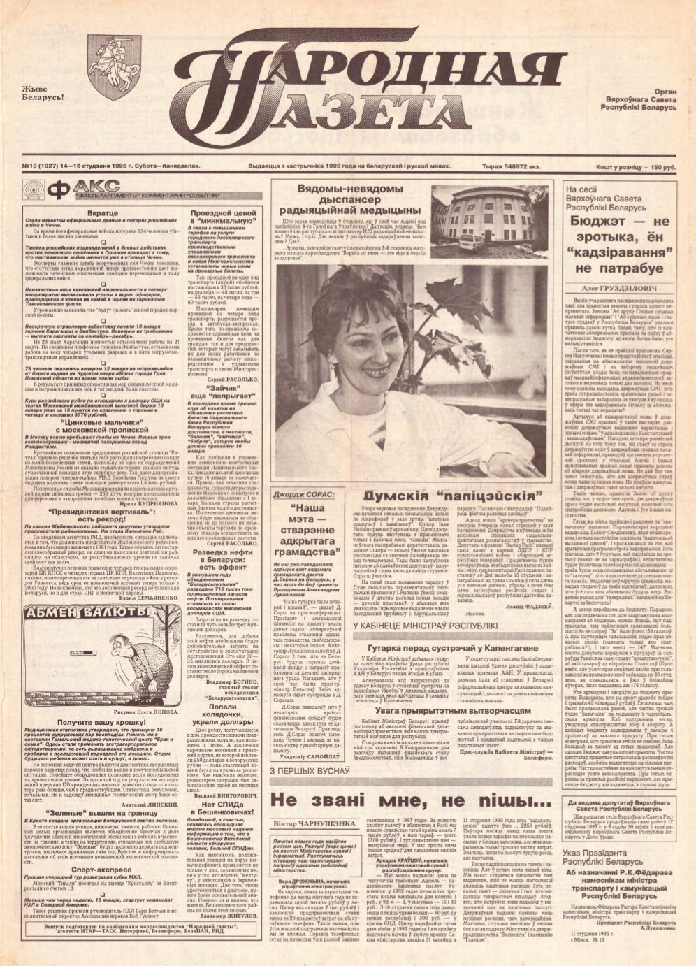 «Народная газета» — орган Вярхоўнага Савета Рэспублікі Беларусь. Выдавец: Адкрытае акцыянернае таварыства Народная газета. Выходзіць штодзённа, акрамя нядзелі і панядзелка, 250 разоў у год. Выдаецца з кастрычніка 1990 года на беларускай і рускай мовах. З 1990 па 1995 год пасаду галоўнага рэдактара «Народнай газеты» займаў Іосіф Сярэдзіч. З мая 1990 па студзень 1996 — дэпутат Вярхоўнага Савета XII склікання. Выданне займала ўмераную цэнтрысцкую пазыцыю, імкнучыся адлюстраваць палітычныя погляды большасці грамадзян. 17 сакавіка 1995 г. Указам № 113 Аляксандр Лукашэнка прызначыў галоўным рэдактарам «Народнай газеты» Мікалая Галко, не зважаючы на тое, што правам прызначаць галоўнага рэдактара сваёй уласнай газеты валодаў толькі Вярхоўны савет.