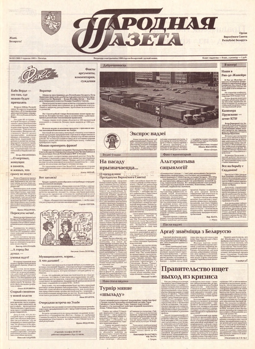 «Народная газета» — орган Вярхоўнага Савета Рэспублікі Беларусь. Выдавец: Адкрытае акцыянернае таварыства Народная газета. Выходзіць штодзённа, акрамя нядзелі і панядзелка, 250 разоў у год. Выдаецца з кастрычніка 1990 года на беларускай і рускай мовах. З 1990 па 1995 год пасаду галоўнага рэдактара «Народнай газеты» займаў Іосіф Сярэдзіч. З мая 1990 па студзень 1996 — дэпутат Вярхоўнага Савета XII склікання. Выданне займала ўмераную цэнтрысцкую пазыцыю, імкнучыся адлюстраваць палітычныя погляды большасці грамадзян. 17 сакавіка 1995 г. Указам № 113 Аляксандр Лукашэнка прызначыў галоўным рэдактарам «Народнай газеты» Мікалая Галко, не зважаючы на тое, што правам прызначаць галоўнага рэдактара сваёй уласнай газеты валодаў толькі Вярхоўны савет.