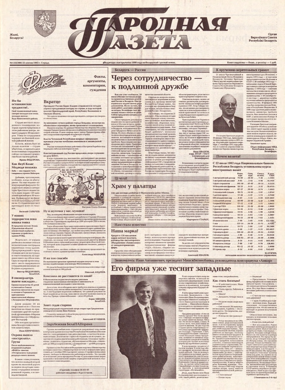 «Народная газета» — орган Вярхоўнага Савета Рэспублікі Беларусь. Выдавец: Адкрытае акцыянернае таварыства Народная газета. Выходзіць штодзённа, акрамя нядзелі і панядзелка, 250 разоў у год. Выдаецца з кастрычніка 1990 года на беларускай і рускай мовах. З 1990 па 1995 год пасаду галоўнага рэдактара «Народнай газеты» займаў Іосіф Сярэдзіч. З мая 1990 па студзень 1996 — дэпутат Вярхоўнага Савета XII склікання. Выданне займала ўмераную цэнтрысцкую пазыцыю, імкнучыся адлюстраваць палітычныя погляды большасці грамадзян. 17 сакавіка 1995 г. Указам № 113 Аляксандр Лукашэнка прызначыў галоўным рэдактарам «Народнай газеты» Мікалая Галко, не зважаючы на тое, што правам прызначаць галоўнага рэдактара сваёй уласнай газеты валодаў толькі Вярхоўны савет.
