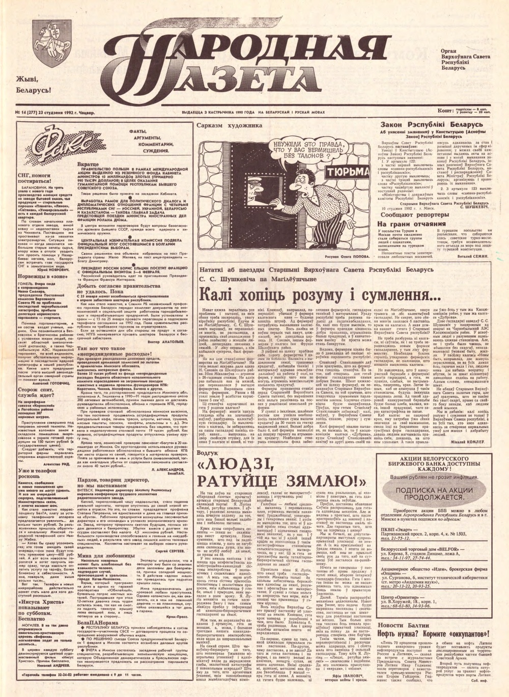«Народная газета» — орган Вярхоўнага Савета Рэспублікі Беларусь. Выдавец: Адкрытае акцыянернае таварыства Народная газета. Выходзіць штодзённа, акрамя нядзелі і панядзелка, 250 разоў у год. Выдаецца з кастрычніка 1990 года на беларускай і рускай мовах. З 1990 па 1995 год пасаду галоўнага рэдактара «Народнай газеты» займаў Іосіф Сярэдзіч. З мая 1990 па студзень 1996 — дэпутат Вярхоўнага Савета XII склікання. Выданне займала ўмераную цэнтрысцкую пазыцыю, імкнучыся адлюстраваць палітычныя погляды большасці грамадзян. 17 сакавіка 1995 г. Указам № 113 Аляксандр Лукашэнка прызначыў галоўным рэдактарам «Народнай газеты» Мікалая Галко, не зважаючы на тое, што правам прызначаць галоўнага рэдактара сваёй уласнай газеты валодаў толькі Вярхоўны савет.