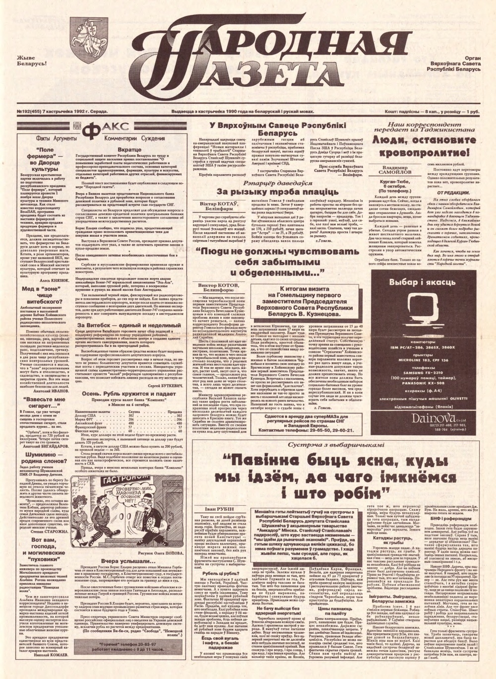 Народная газета 192 (455) 1992