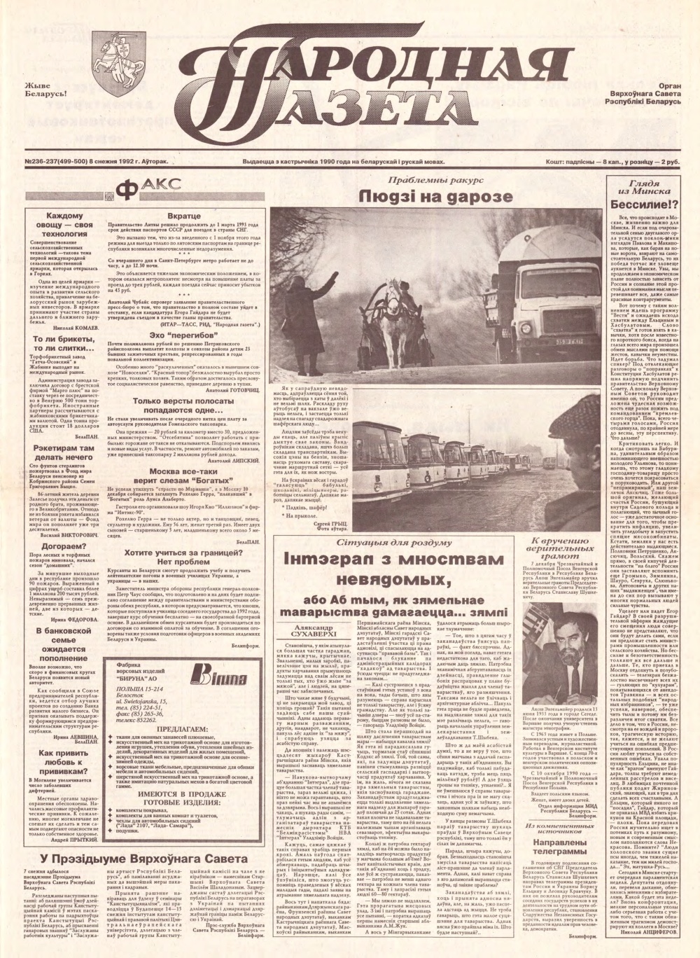 Народная газета 236-237 (499-500) 1992