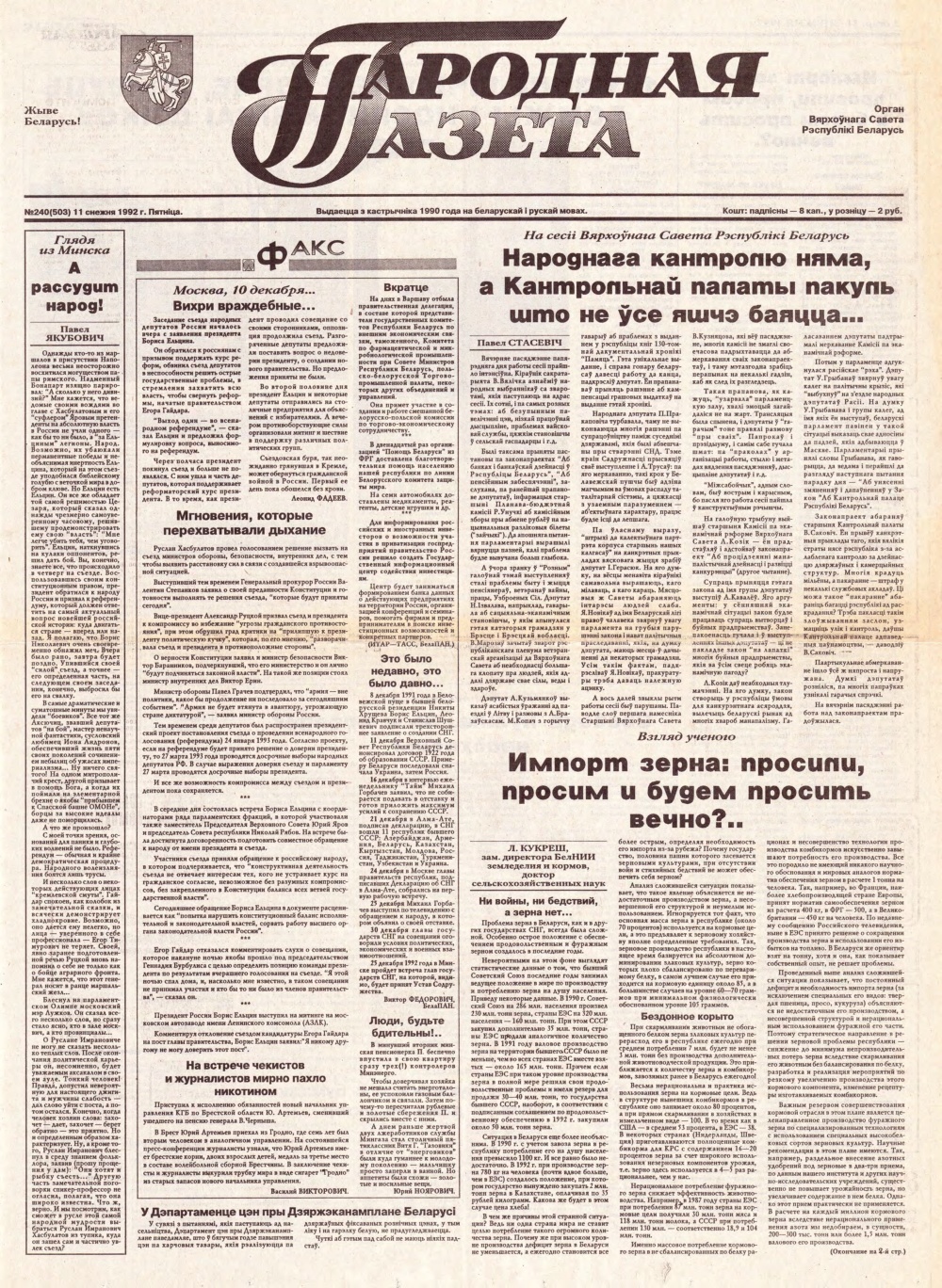 Народная газета 240 (503) 1992