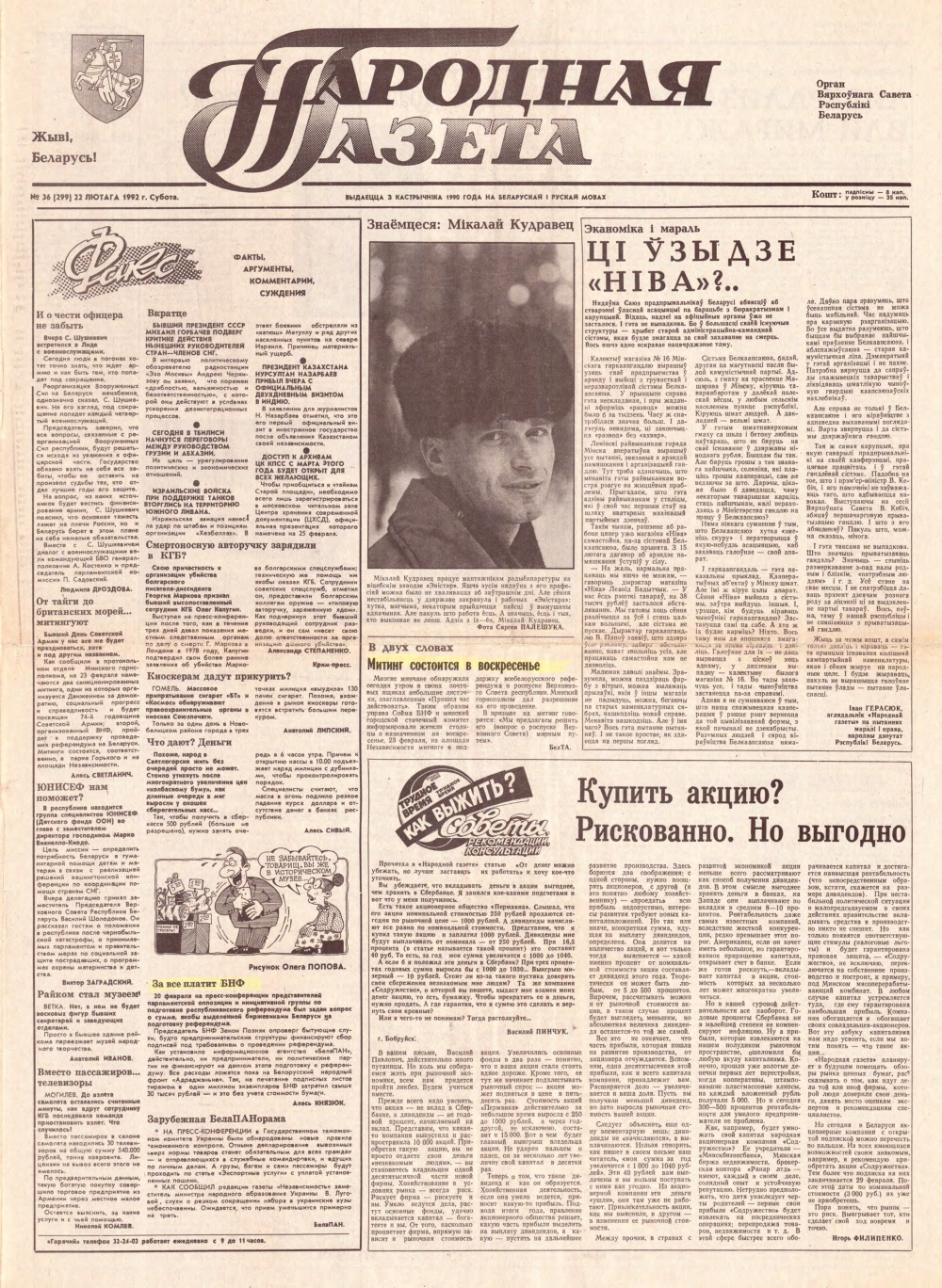 «Народная газета» — орган Вярхоўнага Савета Рэспублікі Беларусь. Выдавец: Адкрытае акцыянернае таварыства Народная газета. Выходзіць штодзённа, акрамя нядзелі і панядзелка, 250 разоў у год. Выдаецца з кастрычніка 1990 года на беларускай і рускай мовах. З 1990 па 1995 год пасаду галоўнага рэдактара «Народнай газеты» займаў Іосіф Сярэдзіч. З мая 1990 па студзень 1996 — дэпутат Вярхоўнага Савета XII склікання. Выданне займала ўмераную цэнтрысцкую пазыцыю, імкнучыся адлюстраваць палітычныя погляды большасці грамадзян. 17 сакавіка 1995 г. Указам № 113 Аляксандр Лукашэнка прызначыў галоўным рэдактарам «Народнай газеты» Мікалая Галко, не зважаючы на тое, што правам прызначаць галоўнага рэдактара сваёй уласнай газеты валодаў толькі Вярхоўны савет.
