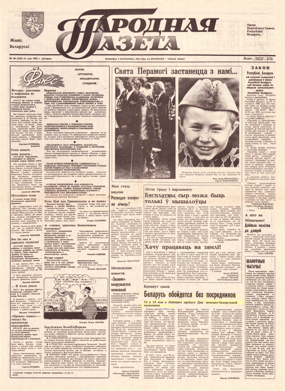«Народная газета» — орган Вярхоўнага Савета Рэспублікі Беларусь. Выдавец: Адкрытае акцыянернае таварыства Народная газета. Выходзіць штодзённа, акрамя нядзелі і панядзелка, 250 разоў у год. Выдаецца з кастрычніка 1990 года на беларускай і рускай мовах. З 1990 па 1995 год пасаду галоўнага рэдактара «Народнай газеты» займаў Іосіф Сярэдзіч. З мая 1990 па студзень 1996 — дэпутат Вярхоўнага Савета XII склікання. Выданне займала ўмераную цэнтрысцкую пазыцыю, імкнучыся адлюстраваць палітычныя погляды большасці грамадзян. 17 сакавіка 1995 г. Указам № 113 Аляксандр Лукашэнка прызначыў галоўным рэдактарам «Народнай газеты» Мікалая Галко, не зважаючы на тое, што правам прызначаць галоўнага рэдактара сваёй уласнай газеты валодаў толькі Вярхоўны савет.