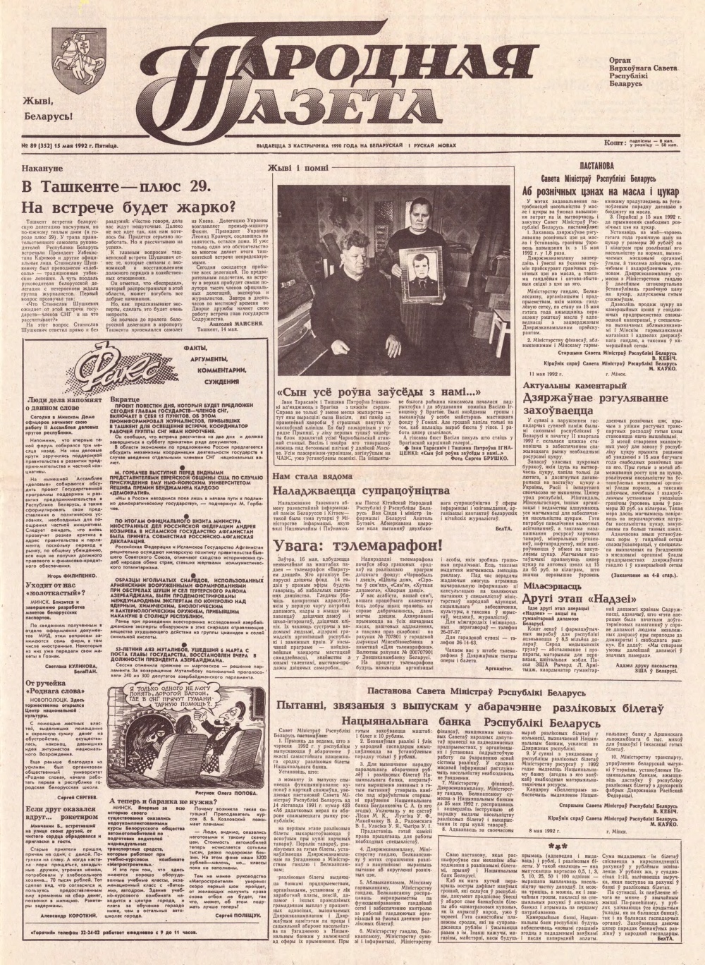 «Народная газета» — орган Вярхоўнага Савета Рэспублікі Беларусь. Выдавец: Адкрытае акцыянернае таварыства Народная газета. Выходзіць штодзённа, акрамя нядзелі і панядзелка, 250 разоў у год. Выдаецца з кастрычніка 1990 года на беларускай і рускай мовах. З 1990 па 1995 год пасаду галоўнага рэдактара «Народнай газеты» займаў Іосіф Сярэдзіч. З мая 1990 па студзень 1996 — дэпутат Вярхоўнага Савета XII склікання. Выданне займала ўмераную цэнтрысцкую пазыцыю, імкнучыся адлюстраваць палітычныя погляды большасці грамадзян. 17 сакавіка 1995 г. Указам № 113 Аляксандр Лукашэнка прызначыў галоўным рэдактарам «Народнай газеты» Мікалая Галко, не зважаючы на тое, што правам прызначаць галоўнага рэдактара сваёй уласнай газеты валодаў толькі Вярхоўны савет.