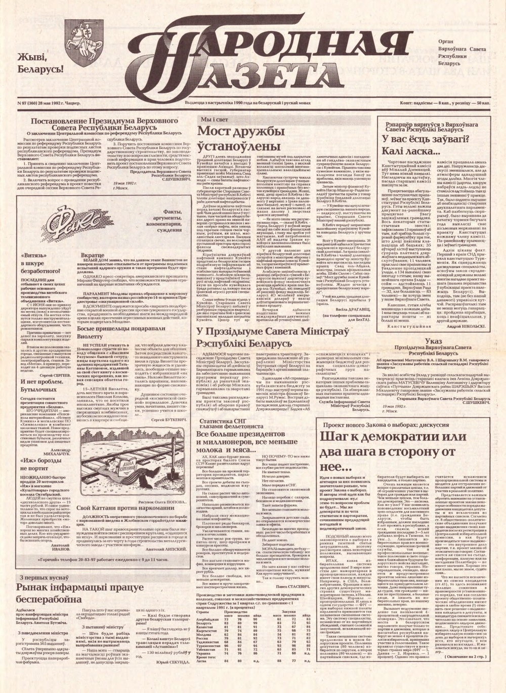 «Народная газета» — орган Вярхоўнага Савета Рэспублікі Беларусь. Выдавец: Адкрытае акцыянернае таварыства Народная газета. Выходзіць штодзённа, акрамя нядзелі і панядзелка, 250 разоў у год. Выдаецца з кастрычніка 1990 года на беларускай і рускай мовах. З 1990 па 1995 год пасаду галоўнага рэдактара «Народнай газеты» займаў Іосіф Сярэдзіч. З мая 1990 па студзень 1996 — дэпутат Вярхоўнага Савета XII склікання. Выданне займала ўмераную цэнтрысцкую пазыцыю, імкнучыся адлюстраваць палітычныя погляды большасці грамадзян. 17 сакавіка 1995 г. Указам № 113 Аляксандр Лукашэнка прызначыў галоўным рэдактарам «Народнай газеты» Мікалая Галко, не зважаючы на тое, што правам прызначаць галоўнага рэдактара сваёй уласнай газеты валодаў толькі Вярхоўны савет.