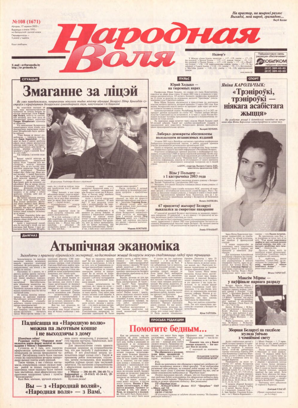 «Народная Воля» — беларуская грамадска-палітычная газета, выдаецца з ліпеня 1995 года на беларускай і рускай мовах. Перыядычнасць - 5 разоў у тыдзень. Створана Іосіфам Сярэдзічам, які дагэтуль працаваў галоўным рэдактарам «Народнай газеты» — афіцыйнай газеты Вярхоўнага Савета Рэспублікі Беларусь (законнага парламента). Газета займала ўмераную цэнтрысцкую пазіцыю, імкнучыся адлюстраваць палітычныя погляды большасці грамадзян.