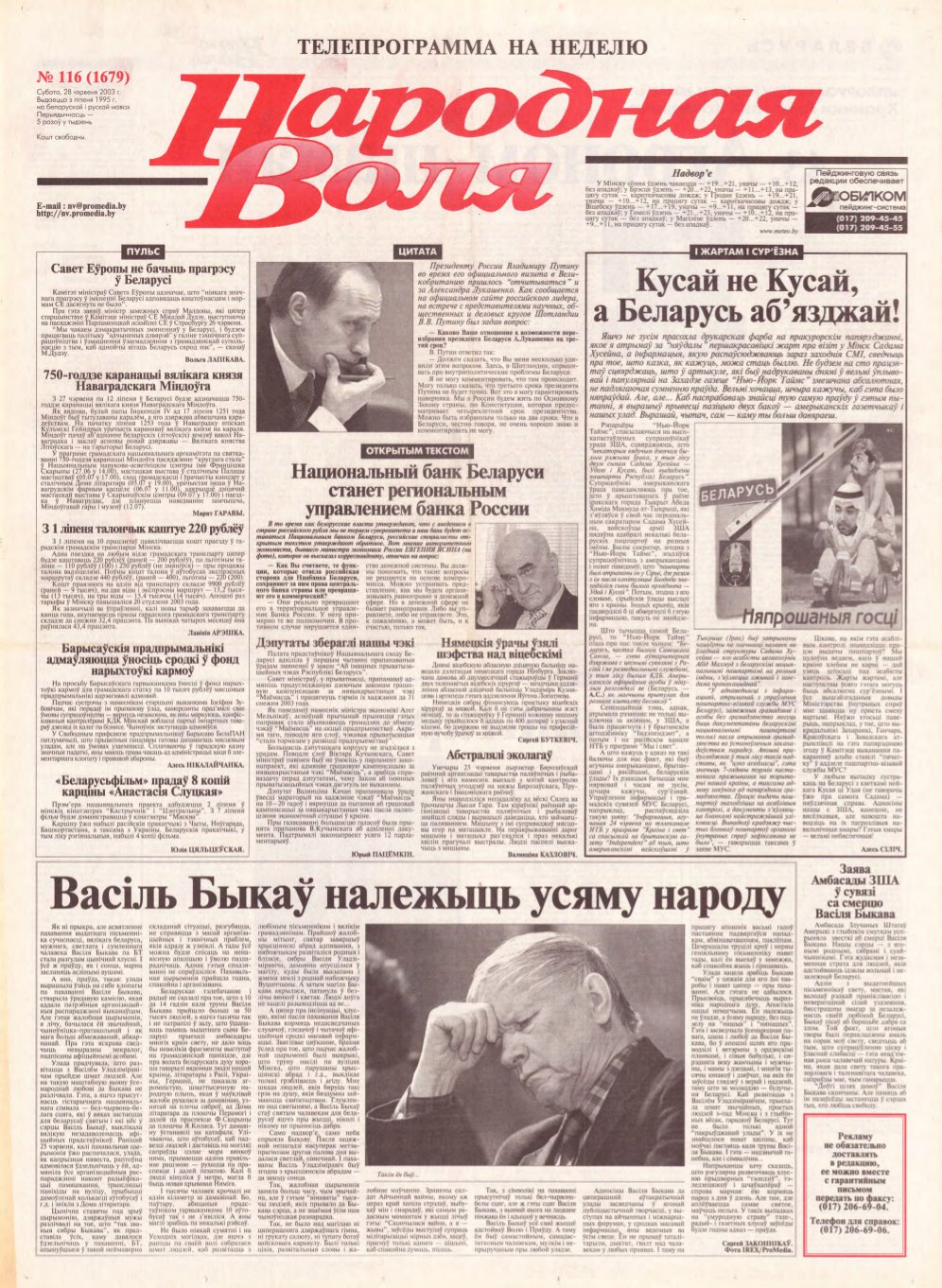 «Народная Воля» — беларуская грамадска-палітычная газета, выдаецца з ліпеня 1995 года на беларускай і рускай мовах. Перыядычнасць - 5 разоў у тыдзень. Створана Іосіфам Сярэдзічам, які дагэтуль працаваў галоўным рэдактарам «Народнай газеты» — афіцыйнай газеты Вярхоўнага Савета Рэспублікі Беларусь (законнага парламента). Газета займала ўмераную цэнтрысцкую пазіцыю, імкнучыся адлюстраваць палітычныя погляды большасці грамадзян.