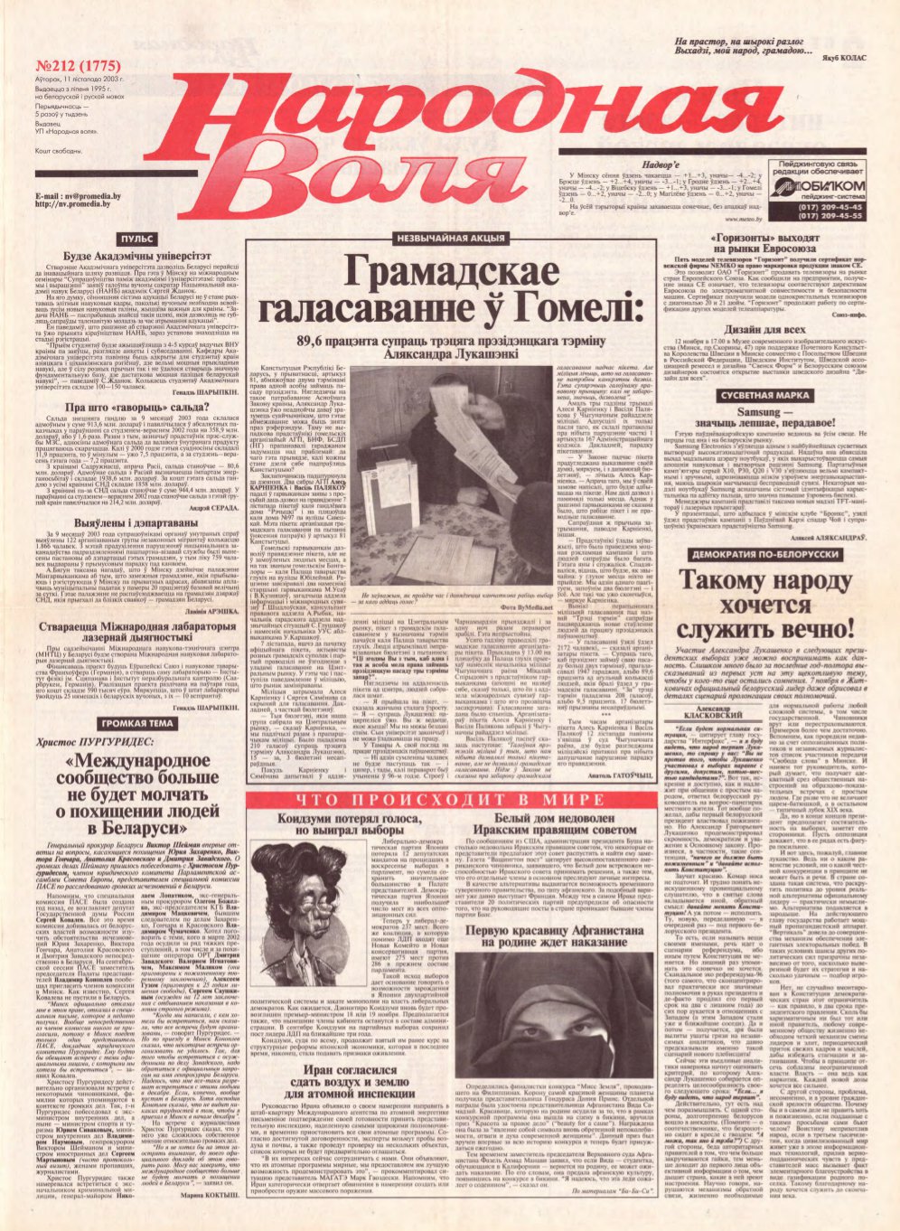 «Народная Воля» — беларуская грамадска-палітычная газета, выдаецца з ліпеня 1995 года на беларускай і рускай мовах. Перыядычнасць - 5 разоў у тыдзень. Створана Іосіфам Сярэдзічам, які дагэтуль працаваў галоўным рэдактарам «Народнай газеты» — афіцыйнай газеты Вярхоўнага Савета Рэспублікі Беларусь (законнага парламента). Газета займала ўмераную цэнтрысцкую пазіцыю, імкнучыся адлюстраваць палітычныя погляды большасці грамадзян.