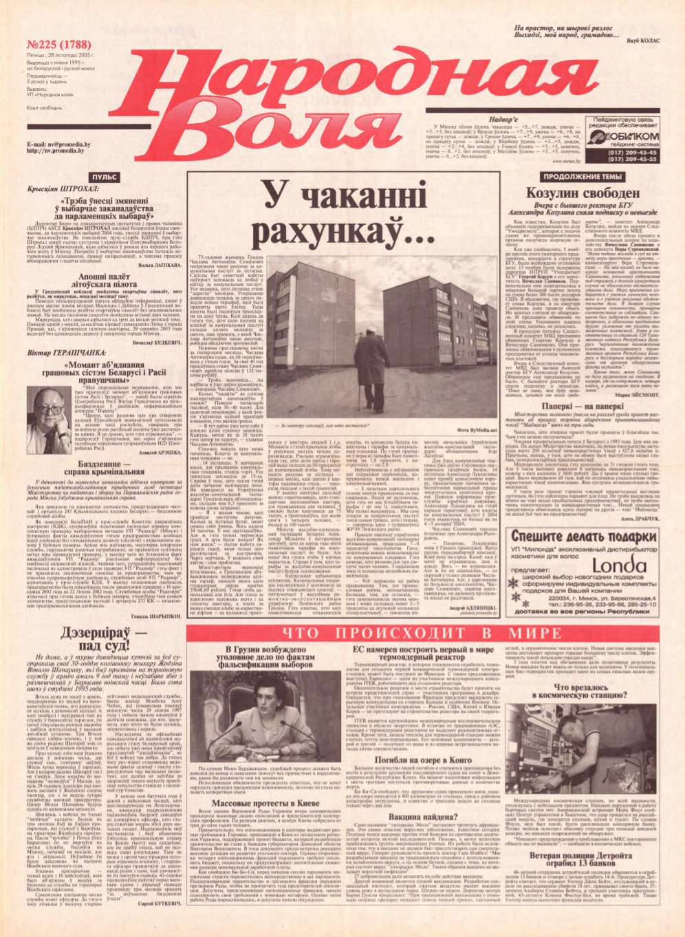 Народная Воля 225 (1788) 2003