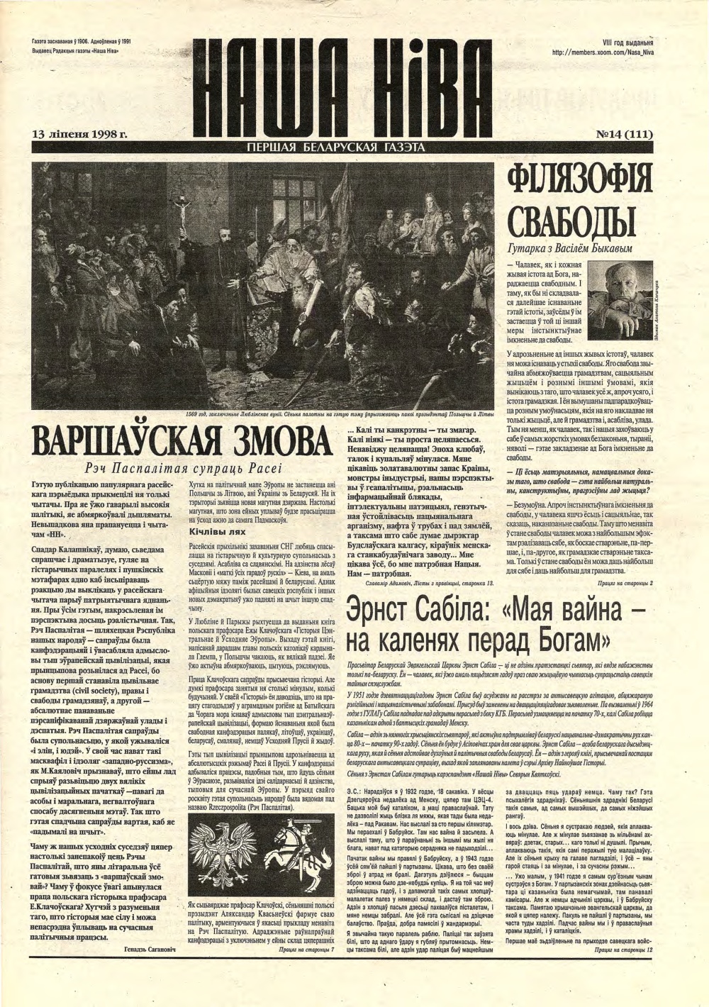 Газэта «Наша Ніва» была ўтвораная ў 1906 годзе, і спачатку фактычна была органам Беларускае Сацыялістычнае грамады. У 1991 годзе «Наша Ніва» была адроджаная ў Вільні, галоўным рэдактарам стаў Сяргей Дубавец. Адроджаная газэта зноў стала галоўным выданьнем нацыянальнай інтэлігенцыі, побач з навінамі публікуючы літаратурныя творы, эсэ. У 1996 годзе было прынятае рашэньне пра перанясеньне рэдакцыі ў Менск і трансфармацыі «Нашай Нівы» з выданьня літаратурна-інтэлектуальнага ў выданьне грамадзка-палітычнага характару. Ад 1999 году газэта вяртаецца да штотыднёвае пэрыядычнасьці. Ад 2000 году рэдактарства ў «Нашай Ніве» пераймае Андрэй Дынько. Ад 2002 году аб’ём газэты павялічваецца з 12 да 16 старонак, ад 2005 году — да 24-х. Паралельна з папяровым выданьнем з 1997 году існуе інтэрнэт-сайт газэты. (www.be-x-old.wikipedia.org)