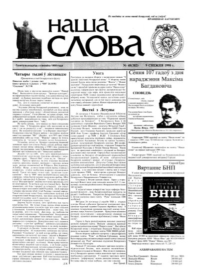 Газета “Наша слова” - газета Грамадскага аб’яднання “ТБМ імя Ф. Скарыны”, якое знаходзіцца на пярэднім краі барацьбы за нацыянальнае адраджэнне беларускага этнасу. Газета заснавана ў сакавіку 1990 года і да 1997 года выходзіла ў Менску. З лістапада 1997 года газета больш за 9 гадоў выдавалася Лідскай гарадской арганізацыя ГА “ТБМ імя Ф. Скарыны”. З 1 лютага 2007 года выдаўцом газеты “Наша слова” з’яўляецца Установа інфармацыі “Выдавецкі дом ТБМ”, зарэгістраваная ў Лідзе Гарадзенскай вобласці. Рэдактар газеты з 1997 года Станіслаў Суднік, сябар Беларускай асацыяцыі журналістаў і Саюза беларускіх пісьменнікаў. У рэдкалегію газеты ўваходзяць знакавыя людзі Беларусі - навукоўцы, пісьменнікі, грамадскія актывісты. Газета друкуе афіцыйную хроніку дзейнасці Таварыства беларускай мовы імя Ф. Скарыны і асвятляе дзейнасць іншых грамадскіх арганізацый дэмакратычнага кірунку а таксама асноўныя падзеі культурнага і грамадскага жыцця краіны. Сярод аўтараў не адзін дзесятак дактароў і кандыдатаў навук, здараюцца акадэмікі. Газета з’яўляецца пілотнай структурай у арганізацыі шматлікіх кампаній па зборы подпісаў з самай рознай нагоды, друкуе звароты, бланкі, а грамадзяне збіраюць подпісы і атакуюць уладу ці то па пытаннях мовы, па пытаннях адукацыі, культуры, ці то па пытаннях назову і пераназову вуліцаў. Гэтыя кампаніі ТБМ вядзе бесперапынна, трымаючы ўладныя структуры пад пастаянным ціскам і дабіваючыся перманентных поспехаў па розных кірунках. Усё гэта без газеты было б немагчыма.