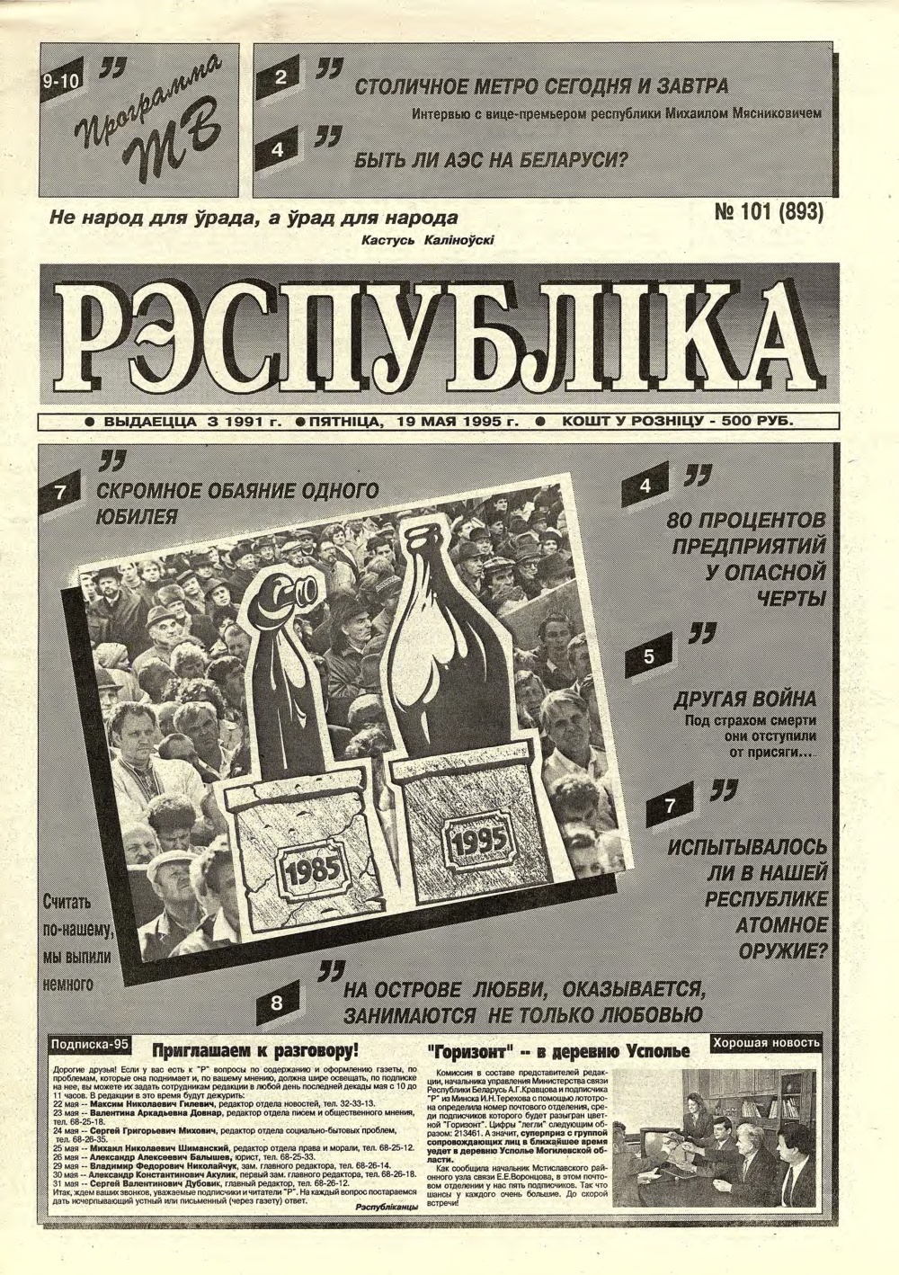 «Рэспубліка» — газета для тых, хто самастойна прымае рашэнні. Заснавальнік - Савет Міністраў Рэспублікі Беларусь. Выдаецца з чэрвеня 1991. Газета выходзіць 250 разоў у год. Аўтары апублікаваных матэрыялаў нясуць адказнасць за падбор і дакладнасць фактаў, іх меркаванні неабавязкова адлюстроўваюць пункт гледжання рэдакцыі. Рукапісы, фотаздымкі і малюнкі не рэцэнзуюцца і не вяртаюцца.