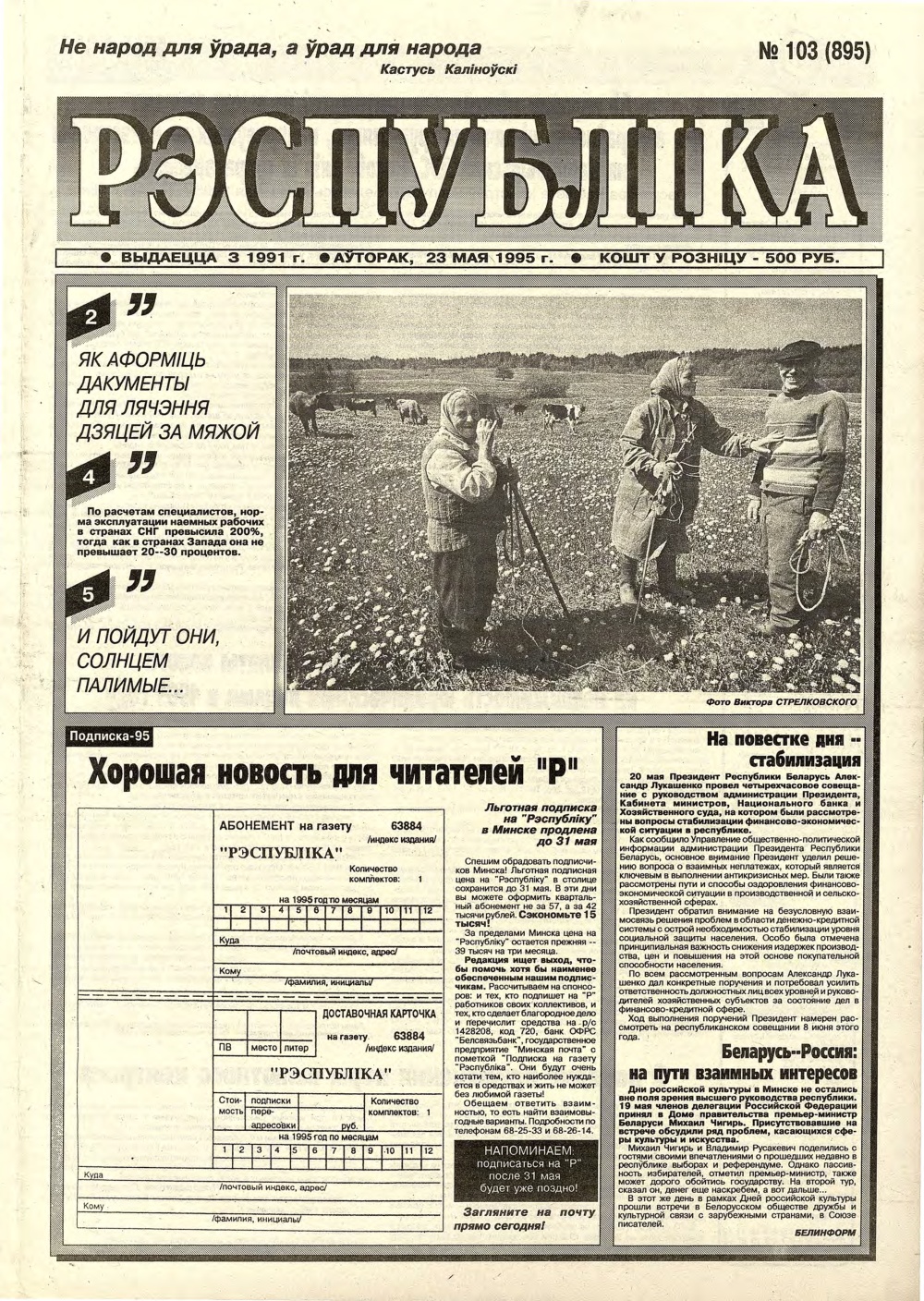«Рэспубліка» — газета для тых, хто самастойна прымае рашэнні. Заснавальнік - Савет Міністраў Рэспублікі Беларусь. Выдаецца з чэрвеня 1991. Газета выходзіць 250 разоў у год. Аўтары апублікаваных матэрыялаў нясуць адказнасць за падбор і дакладнасць фактаў, іх меркаванні неабавязкова адлюстроўваюць пункт гледжання рэдакцыі. Рукапісы, фотаздымкі і малюнкі не рэцэнзуюцца і не вяртаюцца.