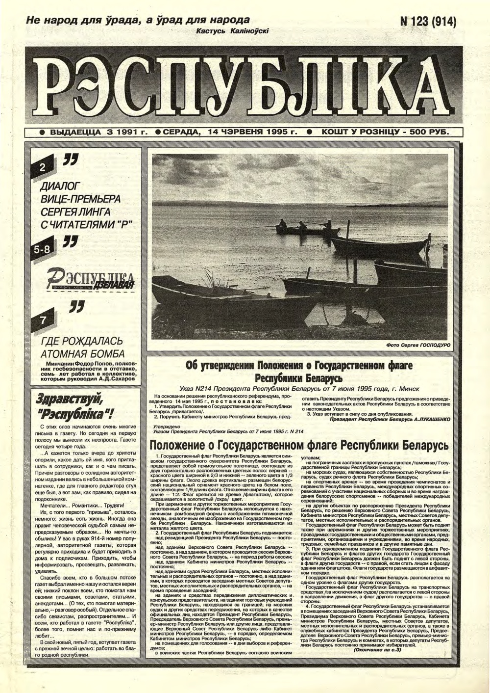 «Рэспубліка» — газета для тых, хто самастойна прымае рашэнні. Заснавальнік - Савет Міністраў Рэспублікі Беларусь. Выдаецца з чэрвеня 1991. Газета выходзіць 250 разоў у год. Аўтары апублікаваных матэрыялаў нясуць адказнасць за падбор і дакладнасць фактаў, іх меркаванні неабавязкова адлюстроўваюць пункт гледжання рэдакцыі. Рукапісы, фотаздымкі і малюнкі не рэцэнзуюцца і не вяртаюцца.