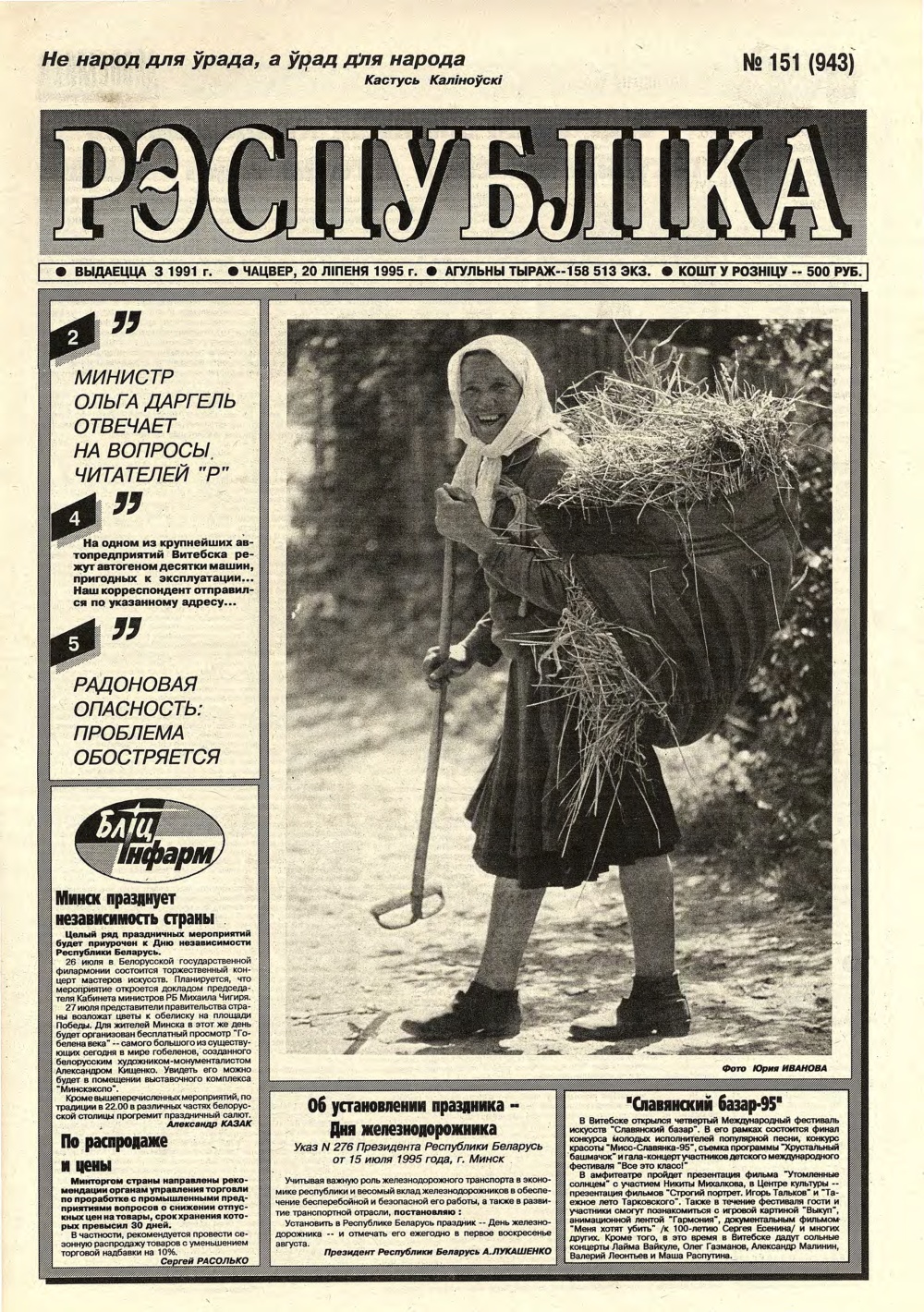 «Рэспубліка» — газета для тых, хто самастойна прымае рашэнні. Заснавальнік - Савет Міністраў Рэспублікі Беларусь. Выдаецца з чэрвеня 1991. Газета выходзіць 250 разоў у год. Аўтары апублікаваных матэрыялаў нясуць адказнасць за падбор і дакладнасць фактаў, іх меркаванні неабавязкова адлюстроўваюць пункт гледжання рэдакцыі. Рукапісы, фотаздымкі і малюнкі не рэцэнзуюцца і не вяртаюцца.
