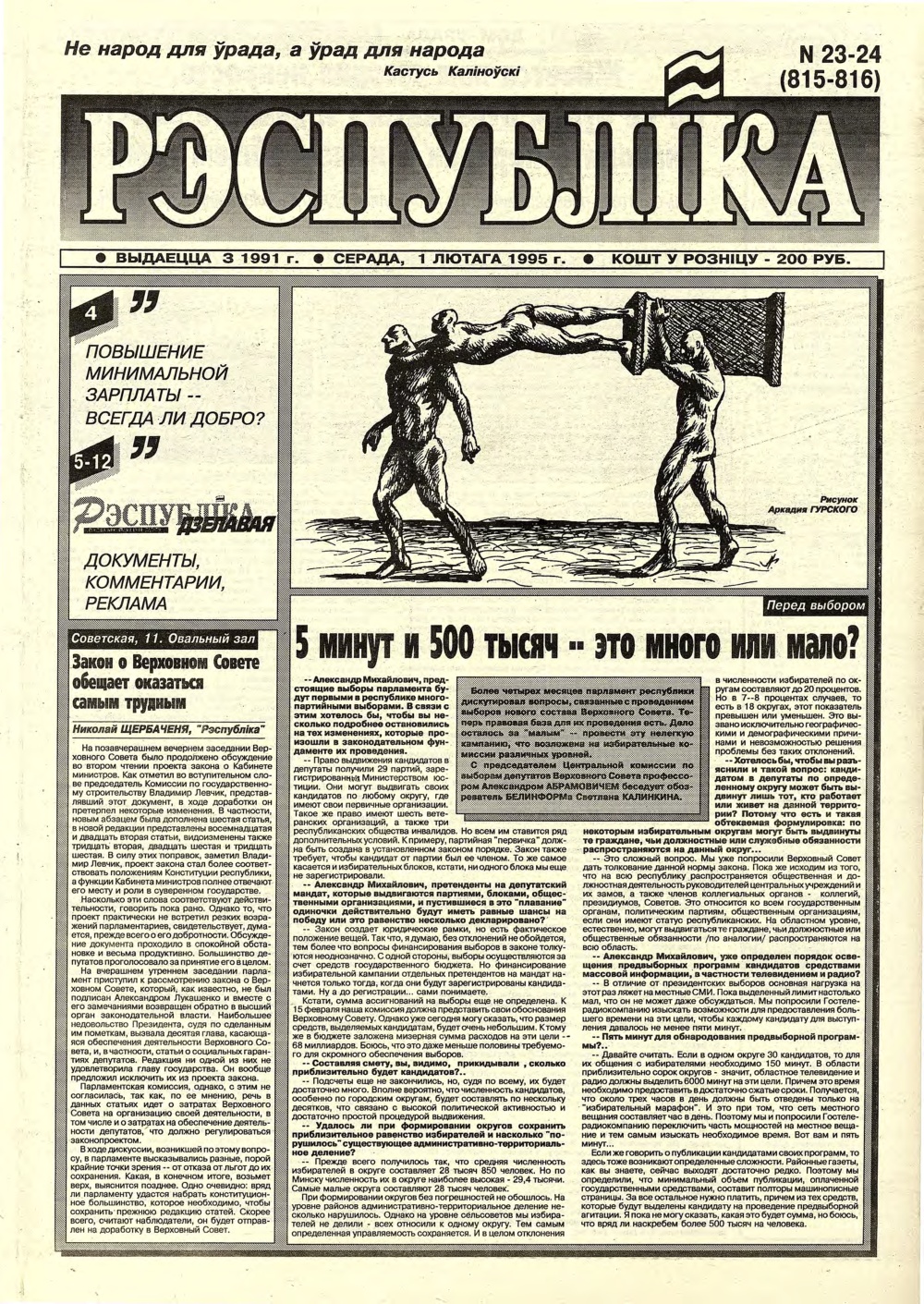 «Рэспубліка» — газета для тых, хто самастойна прымае рашэнні. Заснавальнік - Савет Міністраў Рэспублікі Беларусь. Выдаецца з чэрвеня 1991. Газета выходзіць 250 разоў у год. Аўтары апублікаваных матэрыялаў нясуць адказнасць за падбор і дакладнасць фактаў, іх меркаванні неабавязкова адлюстроўваюць пункт гледжання рэдакцыі. Рукапісы, фотаздымкі і малюнкі не рэцэнзуюцца і не вяртаюцца.