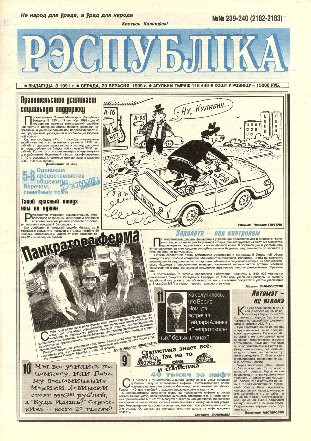 «Рэспубліка» — газета для тых, хто самастойна прымае рашэнні. Заснавальнік - Савет Міністраў Рэспублікі Беларусь. Выдаецца з чэрвеня 1991. Газета выходзіць 250 разоў у год. Аўтары апублікаваных матэрыялаў нясуць адказнасць за падбор і дакладнасць фактаў, іх меркаванні неабавязкова адлюстроўваюць пункт гледжання рэдакцыі. Рукапісы, фотаздымкі і малюнкі не рэцэнзуюцца і не вяртаюцца.