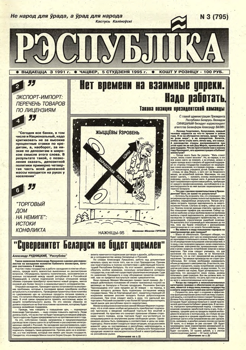 «Рэспубліка» — газета для тых, хто самастойна прымае рашэнні. Заснавальнік - Савет Міністраў Рэспублікі Беларусь. Выдаецца з чэрвеня 1991. Газета выходзіць 250 разоў у год. Аўтары апублікаваных матэрыялаў нясуць адказнасць за падбор і дакладнасць фактаў, іх меркаванні неабавязкова адлюстроўваюць пункт гледжання рэдакцыі. Рукапісы, фотаздымкі і малюнкі не рэцэнзуюцца і не вяртаюцца.