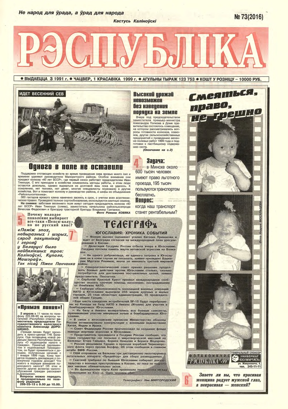 «Рэспубліка» — газета для тых, хто самастойна прымае рашэнні. Заснавальнік - Савет Міністраў Рэспублікі Беларусь. Выдаецца з чэрвеня 1991. Газета выходзіць 250 разоў у год. Аўтары апублікаваных матэрыялаў нясуць адказнасць за падбор і дакладнасць фактаў, іх меркаванні неабавязкова адлюстроўваюць пункт гледжання рэдакцыі. Рукапісы, фотаздымкі і малюнкі не рэцэнзуюцца і не вяртаюцца.