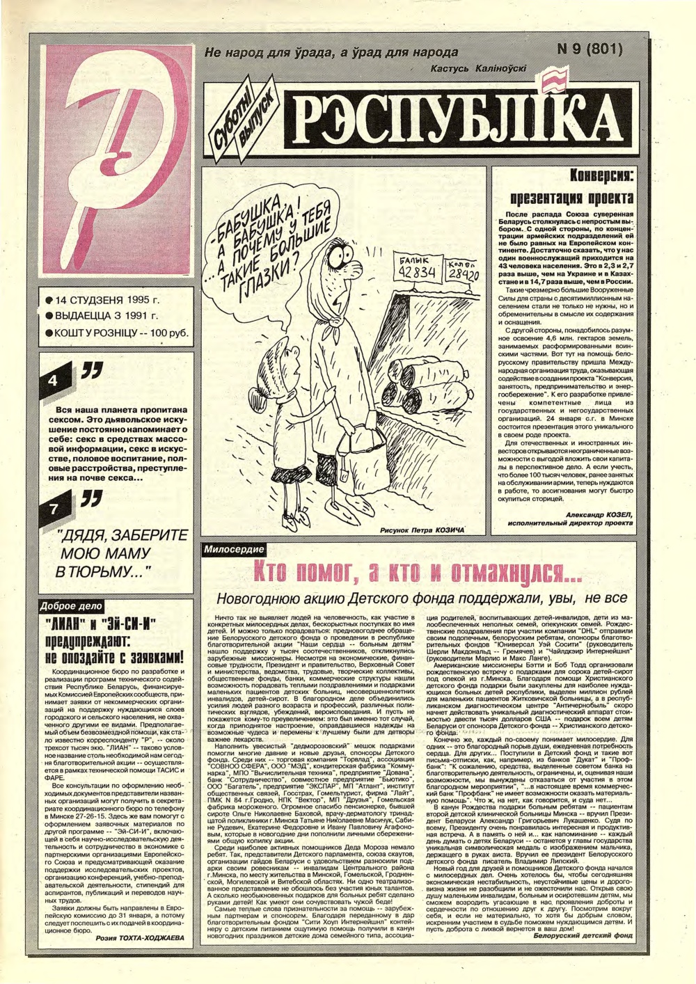 «Рэспубліка» — газета для тых, хто самастойна прымае рашэнні. Заснавальнік - Савет Міністраў Рэспублікі Беларусь. Выдаецца з чэрвеня 1991. Газета выходзіць 250 разоў у год. Аўтары апублікаваных матэрыялаў нясуць адказнасць за падбор і дакладнасць фактаў, іх меркаванні неабавязкова адлюстроўваюць пункт гледжання рэдакцыі. Рукапісы, фотаздымкі і малюнкі не рэцэнзуюцца і не вяртаюцца.