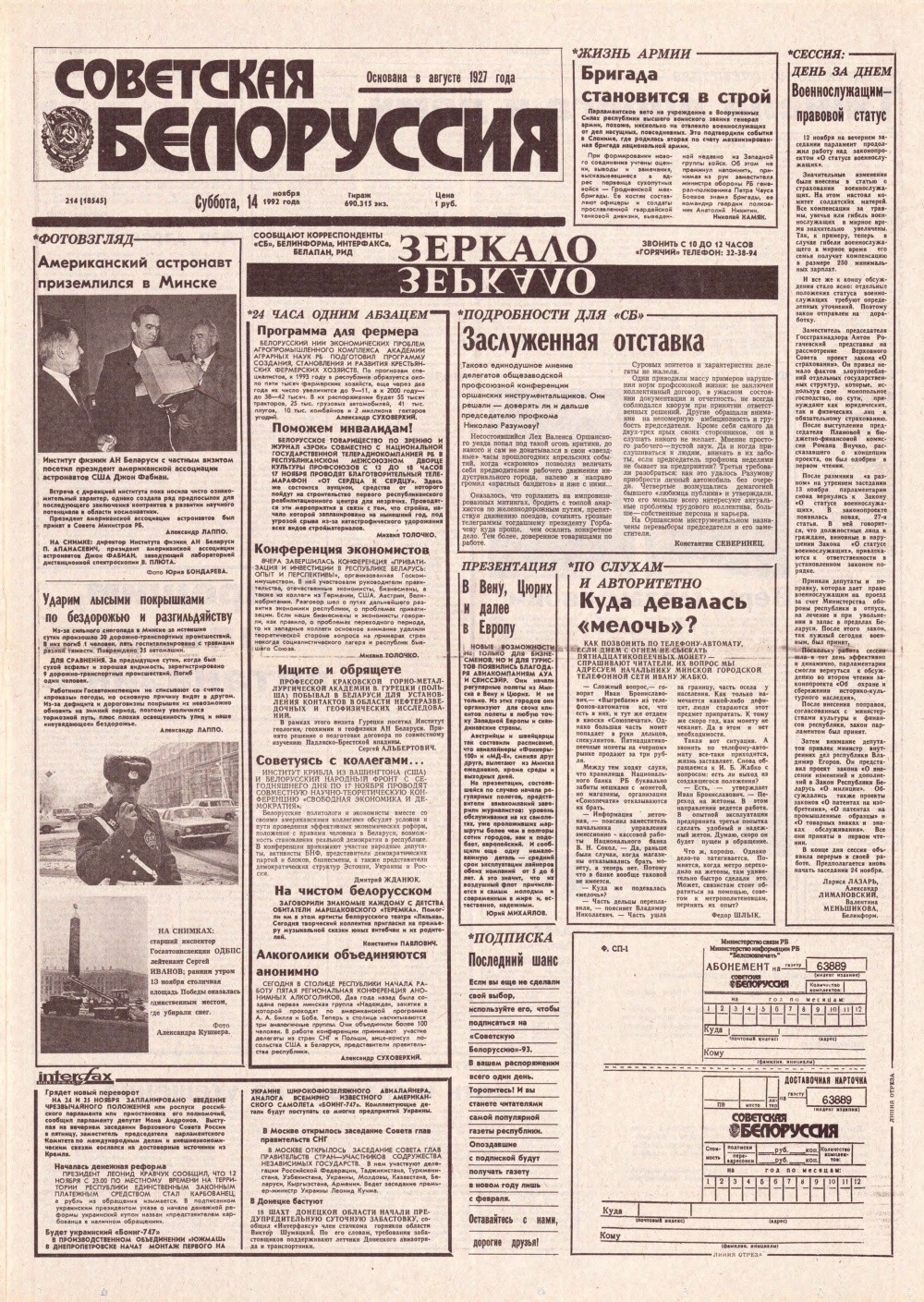 орган Центрального Комитета Коммунистической партии Белоруссии, Верховного Совета и Совета Министров БССР