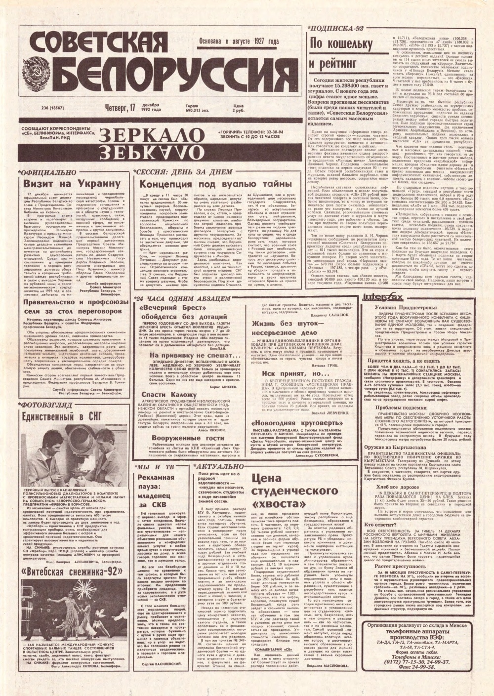 орган Центрального Комитета Коммунистической партии Белоруссии, Верховного Совета и Совета Министров БССР