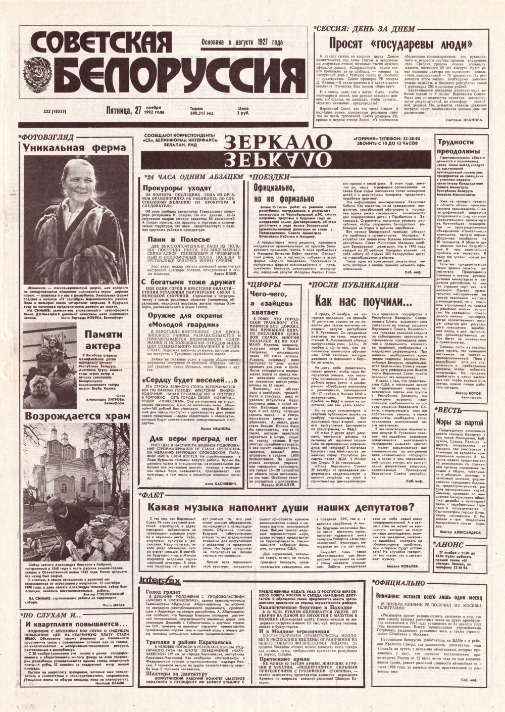 орган Центрального Комитета Коммунистической партии Белоруссии, Верховного Совета и Совета Министров БССР