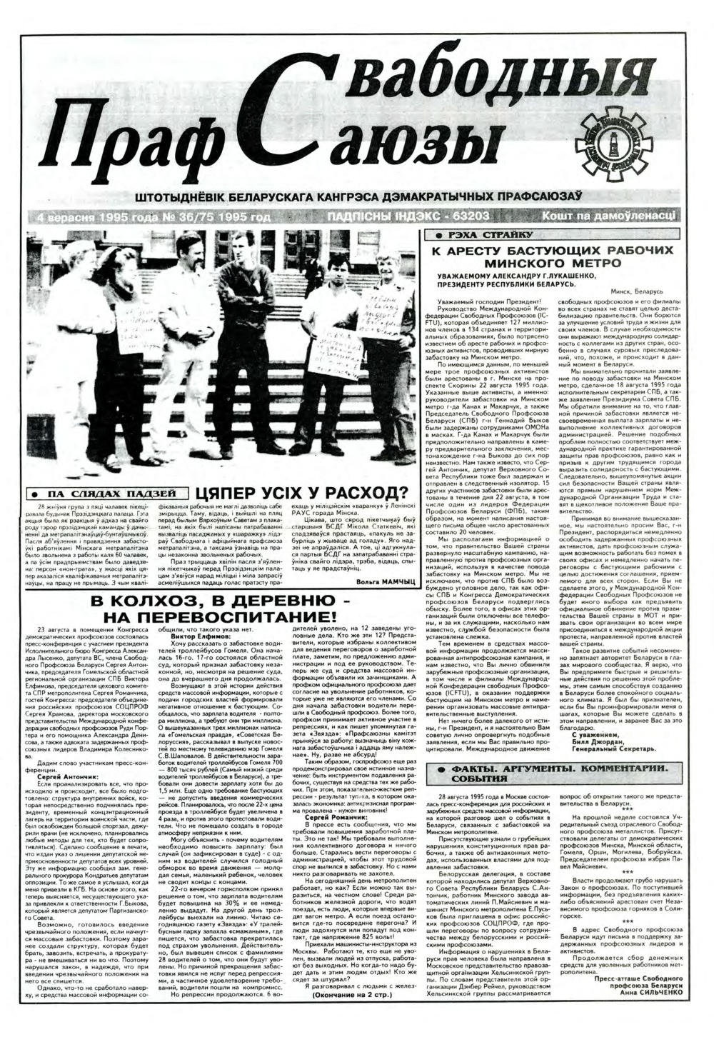 «Свабодныя прафсаюзы» — выдаецца з лістапада 1993 года на беларускай і рускай мовах. Заснавзльнікі: Беларускі кангрэс дэмакратычных прафсаюзаў. Рукапісы не рэцэнзуюцца і не вяртаюцца. Рэдакцыя можа друкаваць артыкулы ў парадку абмеркавання, не падзяляючы пункту гледжання аўтара.