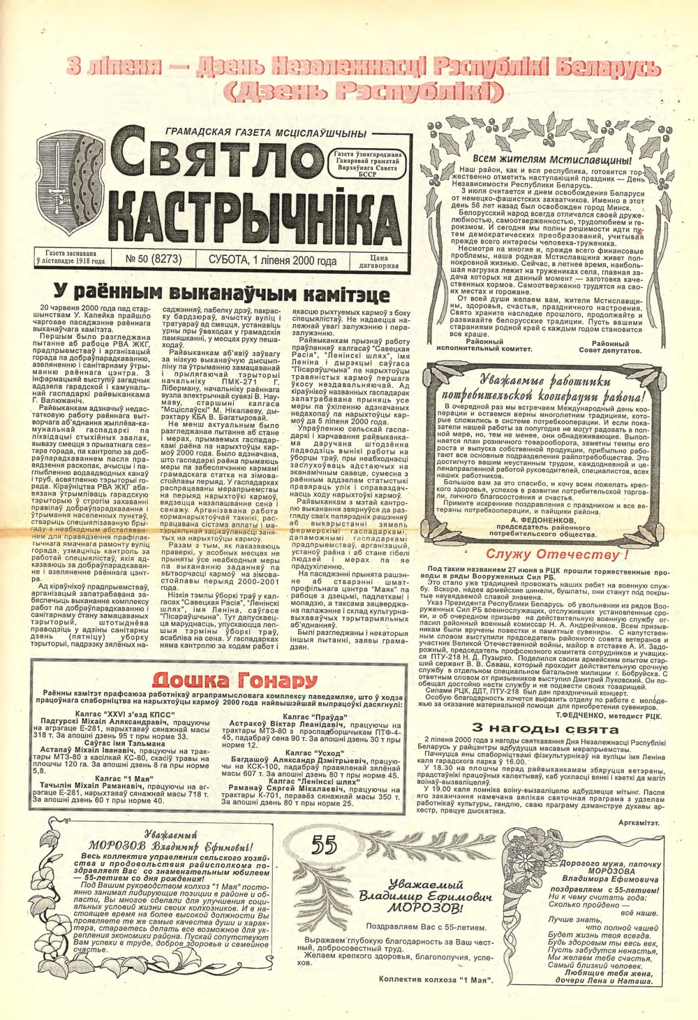 • Выдавец: Мсціслаўскі раённы выканаўчы камітэт, Мсціслаўскі раённы Савет дэпутатаў, працоўны калектыў рэдакцыі