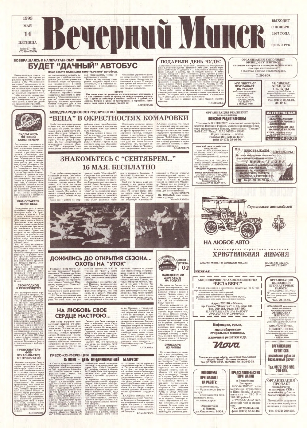 • Выдавец: трудовой коллектив редакции газеты Вечерний Минск