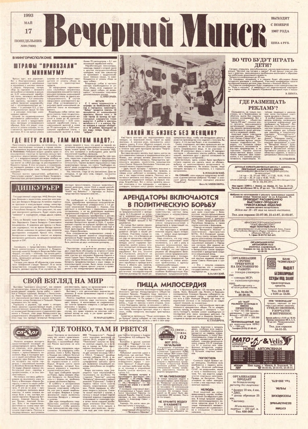 «Вечерний Минск» — выходит з ноября 1967 года. Учредитель: трудовой коллектив редакции газеты «Вечерний Минск». Газета издается на русском и белорусском языках, выходит 5 раз в неделю, кроме субботы и воскресенья — 250 раз в году.