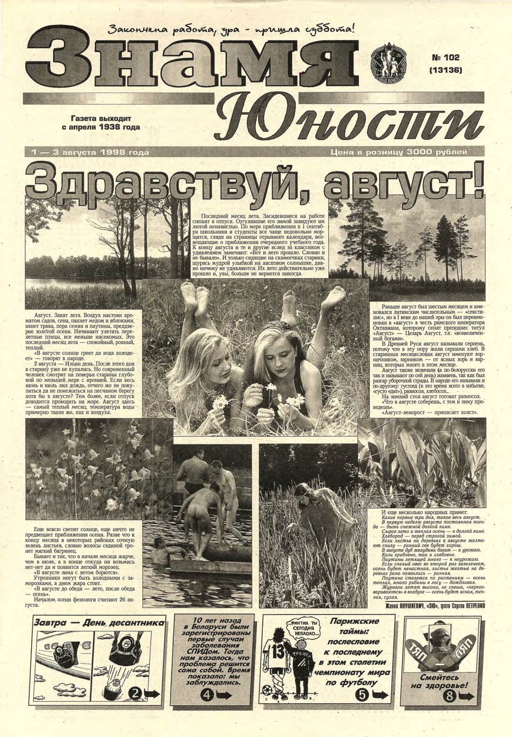 «Знамя юности» — общественно-политическая газета Белоруссии. Газета образована в 1938 году как совместный печатный орган Центрального комитета и Минского областного комитета ЛКСМ Белоруссии. Первый номер вышел 10 апреля 1938 года. Называлась газета «Сталинская молодёжь». Учредителем газеты с 1956 года являлся ЦК ЛКСМ Белоруссии. В годы Великой Отечественной войны газета выходила на одном из фронтов Красной Армии в виде листовки формата А4. Первый полноформатный послевоенный номер газеты «Сталинская молодёжь» вышел 6 июля 1945 года. В июне 1956 года газета «Сталинская молодёжь» переименована в газету «Знамя юности». Крыніца: ru.wikipedia.org