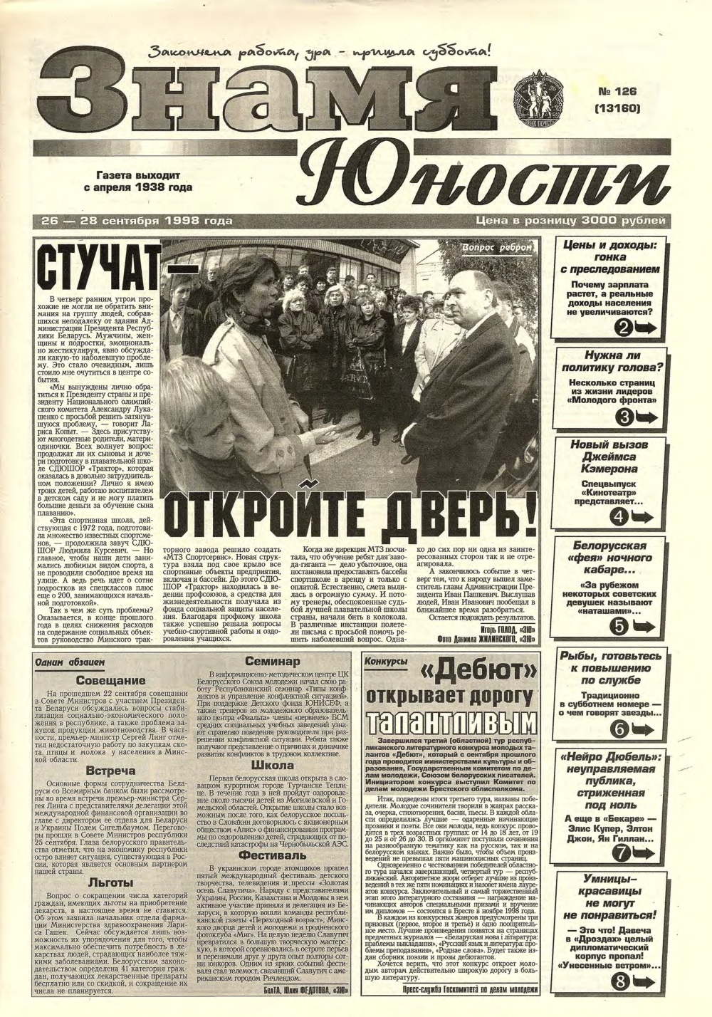 «Знамя юности» — общественно-политическая газета Белоруссии. Газета образована в 1938 году как совместный печатный орган Центрального комитета и Минского областного комитета ЛКСМ Белоруссии. Первый номер вышел 10 апреля 1938 года. Называлась газета «Сталинская молодёжь». Учредителем газеты с 1956 года являлся ЦК ЛКСМ Белоруссии. В годы Великой Отечественной войны газета выходила на одном из фронтов Красной Армии в виде листовки формата А4. Первый полноформатный послевоенный номер газеты «Сталинская молодёжь» вышел 6 июля 1945 года. В июне 1956 года газета «Сталинская молодёжь» переименована в газету «Знамя юности». Крыніца: ru.wikipedia.org